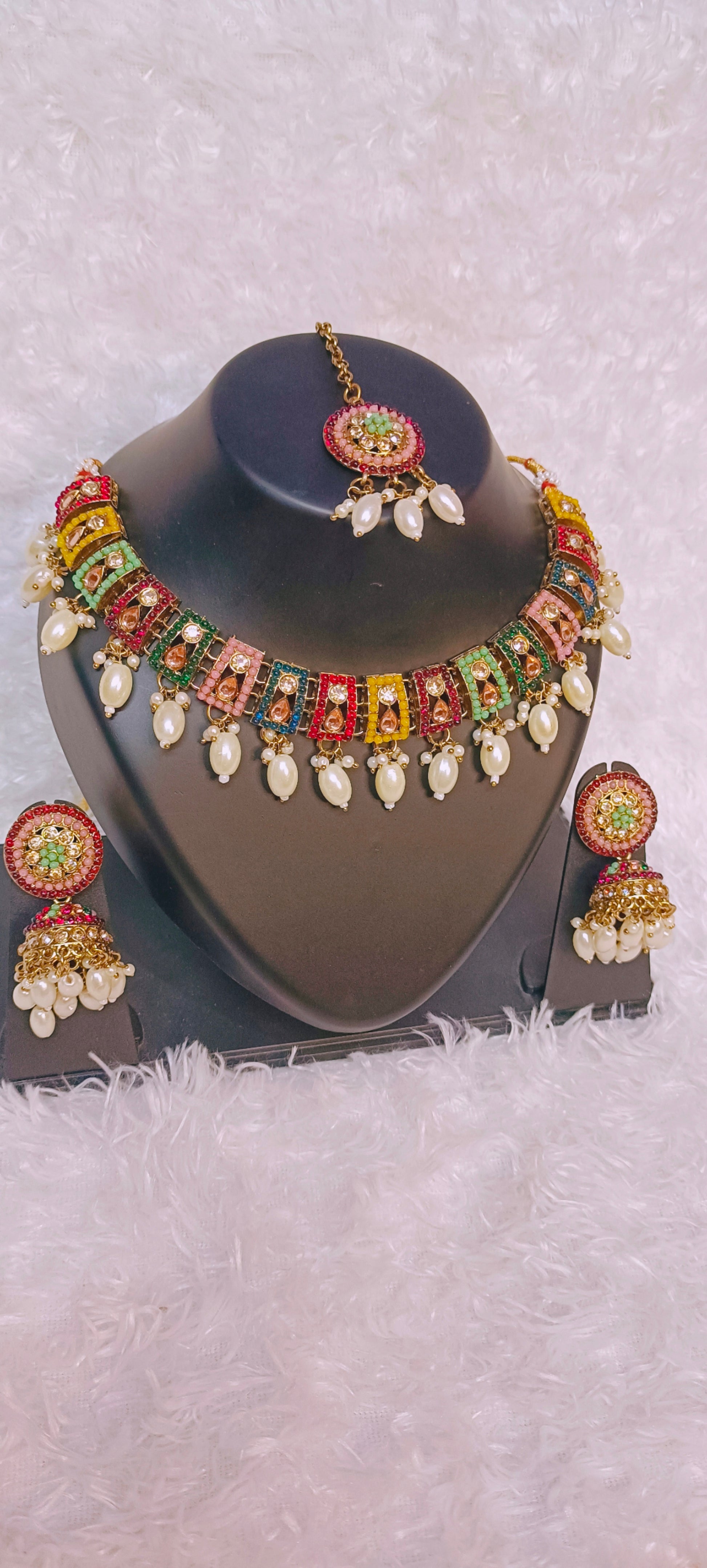Elevate your style game with our high-quality multi-color necklace! This stunning piece is crafted with intricate seed beads and sparkling kundan, making it perfect for any occasion. Say goodbye to dull jewelry and make a statement with our versatile and elegant piece!
